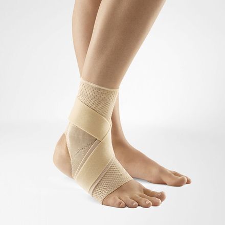 Atmungsaktive Bandage mit Gurtsystem und offener Ferse zur muskulären Stabiliserung des Sprunggelenks